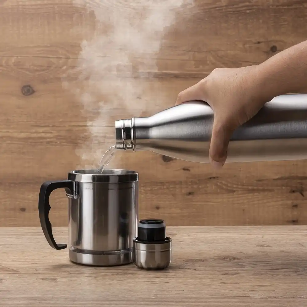 Garrafa térmica 780ml em inox de alta qualidade. Possui tampa rosqueável com detalhe superior em relevo, pode ser utilizada com líquidos quentes ou frios. Observação: não colocar no fogão ou micro-ondas.